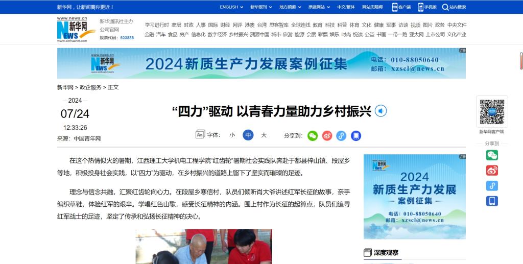 机电工程学院“红齿轮”暑期社会实践队奔赴于都县梓山镇、段屋乡等地,积极投身社会实践,以“四力”为驱动,在乡村振兴的道路上留下了坚实而璀璨的足迹。