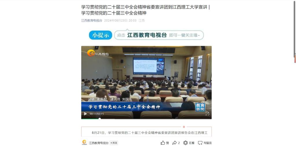 8月21日,学习贯彻党的二十届三中全会精神省委宣讲团宣讲报告会在裸聊直播 举行。省委宣讲团成员、省委党校(江西行政学院)常务副校长(副院长)李能作宣讲报告。