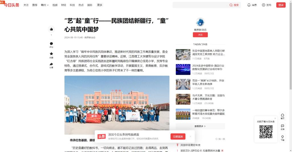 建筑与设计学院“红古绿”民族团结社会实践团走进新疆阿克陶县恰尔隆镇昆仑佳苑小学,发挥专业特色,通过授课式、合作式、游戏式的教学活动,开展爱国主义、美育教育、反诈教育等多主题课程,为昆仑佳苑小学的孩子们带来了不一样的暑期。