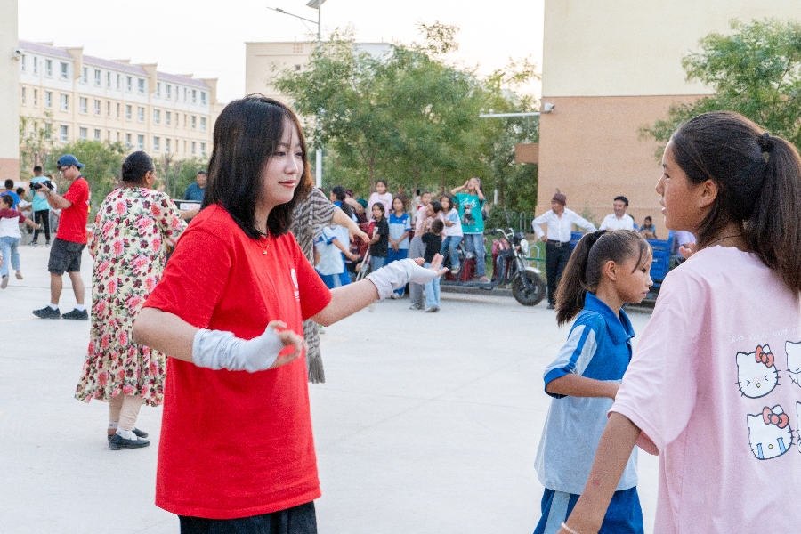 一踏入恰尔隆这片被自然与人文共同宠爱的土地,实践团的成员们仿佛穿越了时空隧道,瞬间被浓郁的民族风情紧紧拥抱。为更深入了解和体验当地文化,实践队员们于“百日文化”大舞台中感受多民族文化交融。据了解,百日广场文化活动是“文化润疆”工作内容,是多年来打造的群众文化品牌,是群众娱乐、自我展示的舞台,是促进群众文化繁荣发展、满足各族群众美好精神文化需求的有效载体。