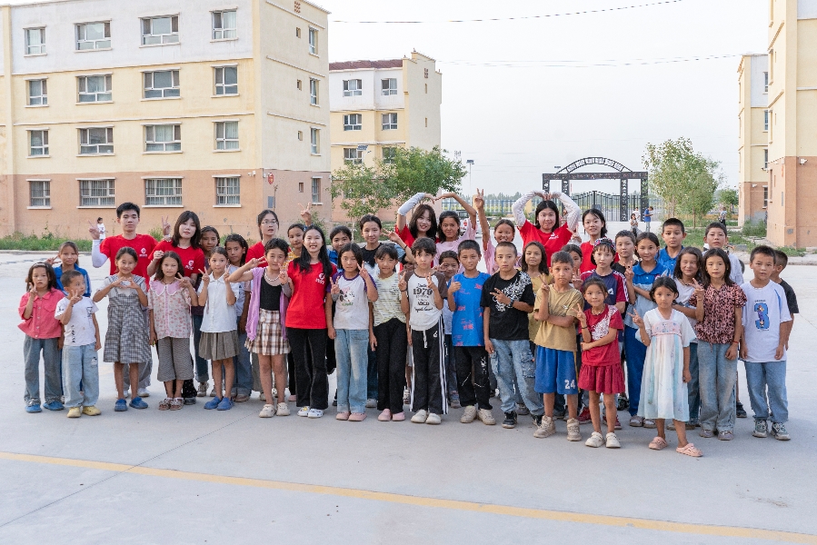 图为实践队员与当地孩子一同合照