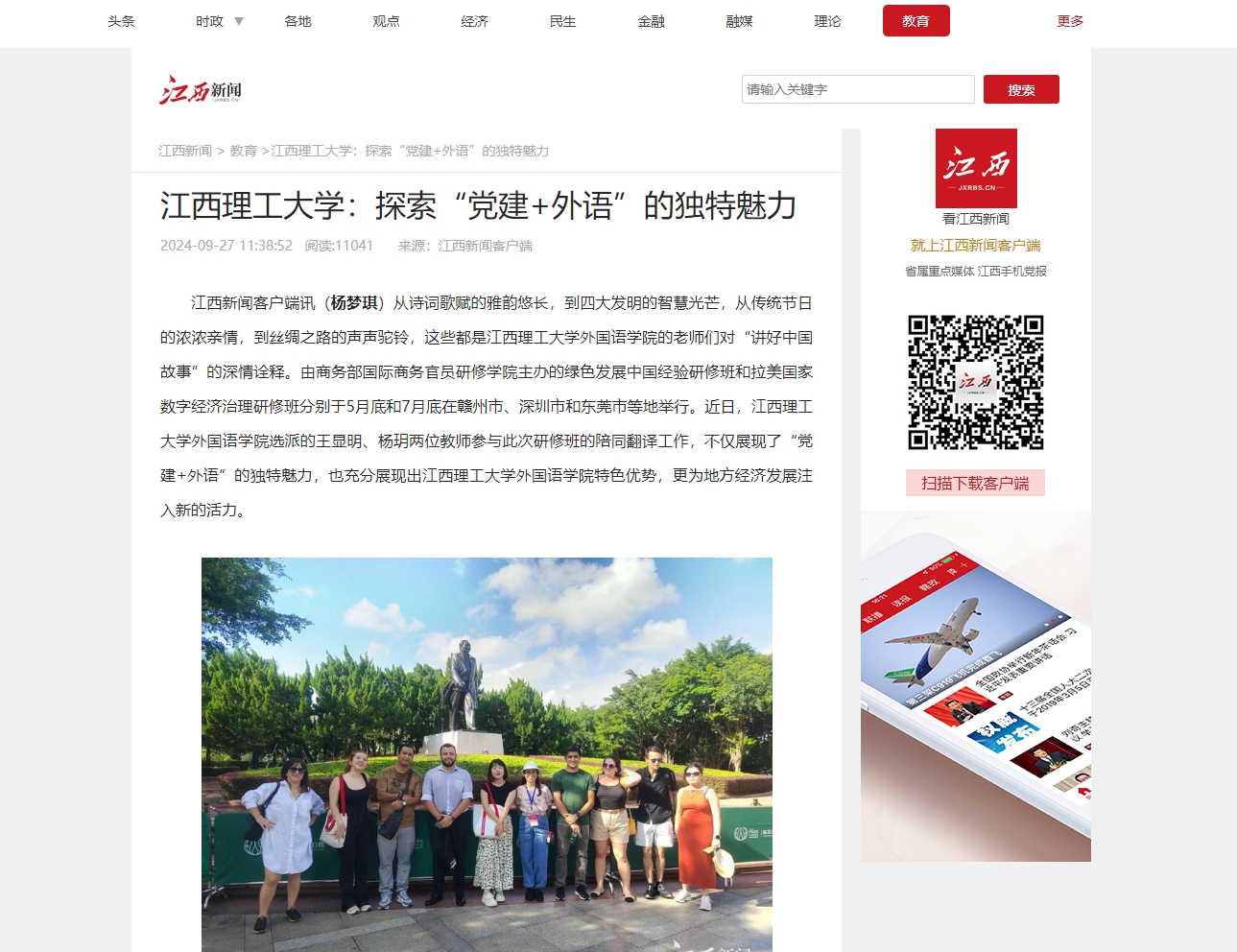 外国语学院的老师们对“讲好中国故事”的深情诠释。由商务部国际商务官员研修学院主办的绿色发展中国经验研修班和拉美国家数字经济治理研修班分别于5月底和7月底在赣州市、深圳市和东莞市等地举行。近日,裸聊直播