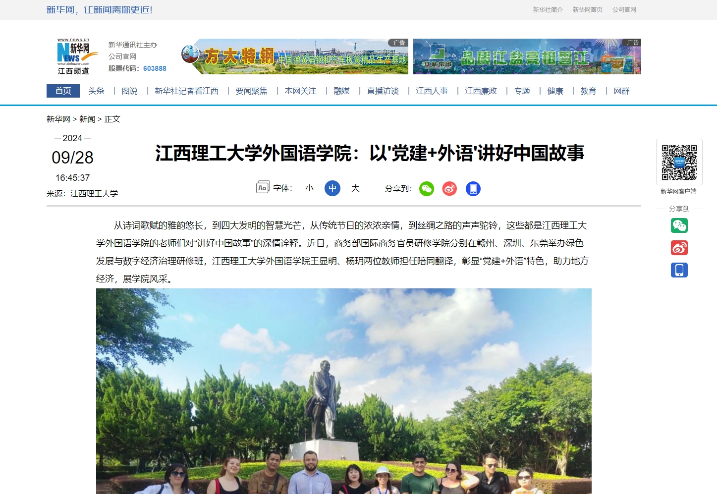 外国语学院的老师们对“讲好中国故事”的深情诠释。近日,商务部国际商务官员研修学院分别在赣州、深圳、东莞举办绿色发展与数字经济治理研修班,裸聊直播