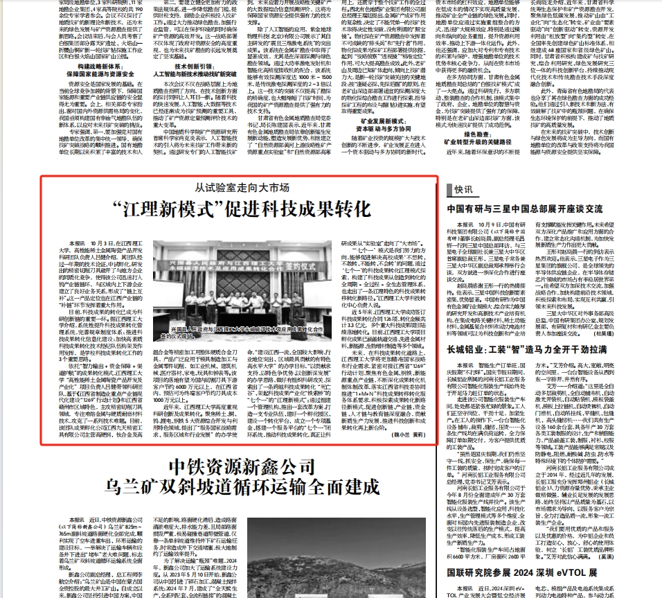 将更加瞄准国家战略和行业需求,紧密对接江西省“1269”行动计划,聚焦有色金属、钢铁、新能源重点产业链,不断深化成果转化机制体制改革,落实江西省科技委协同推进“1+M+N”科技成果转移转化服务体系要求,积极探索成果转化新路径新模式,促进创新链、产业链、资金链、人才链与教育链深度融合,贡献新质生产力发展,推进科技创新和成果转化再上新台阶。