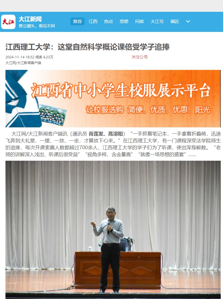 法学院副院长张奇表示。“学生对这个课程反响积极、评价很高、期待很多。学院将继续坚持吸收最前沿的内容、集中优秀的教师、给予全面的保障,开设好自然科学概论这门重要课程。”
