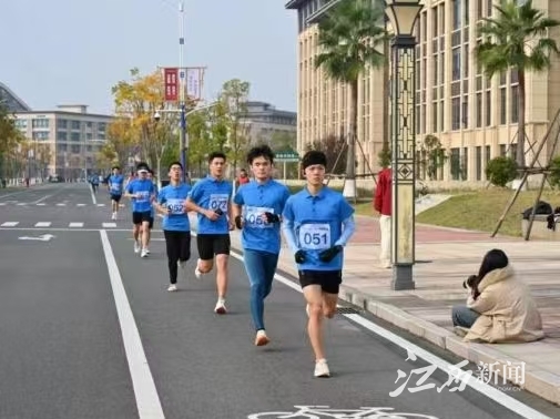 活动现场气氛热烈,参赛者们精神抖擞。教职工队伍格外引人注目,不少年逾五十的老师身姿矫健地奔跑在队伍中,他们用实际行动诠释着对运动的热爱和对健康生活的追求。年轻的学生们也毫不逊色,充满活力的身影在校园道路上穿梭,展现出青春的朝气与蓬勃向上的力量。师生共同奔跑,汗水挥洒在赛道上,青春洋溢在校园内,成为了江理一道靓丽的冬景。