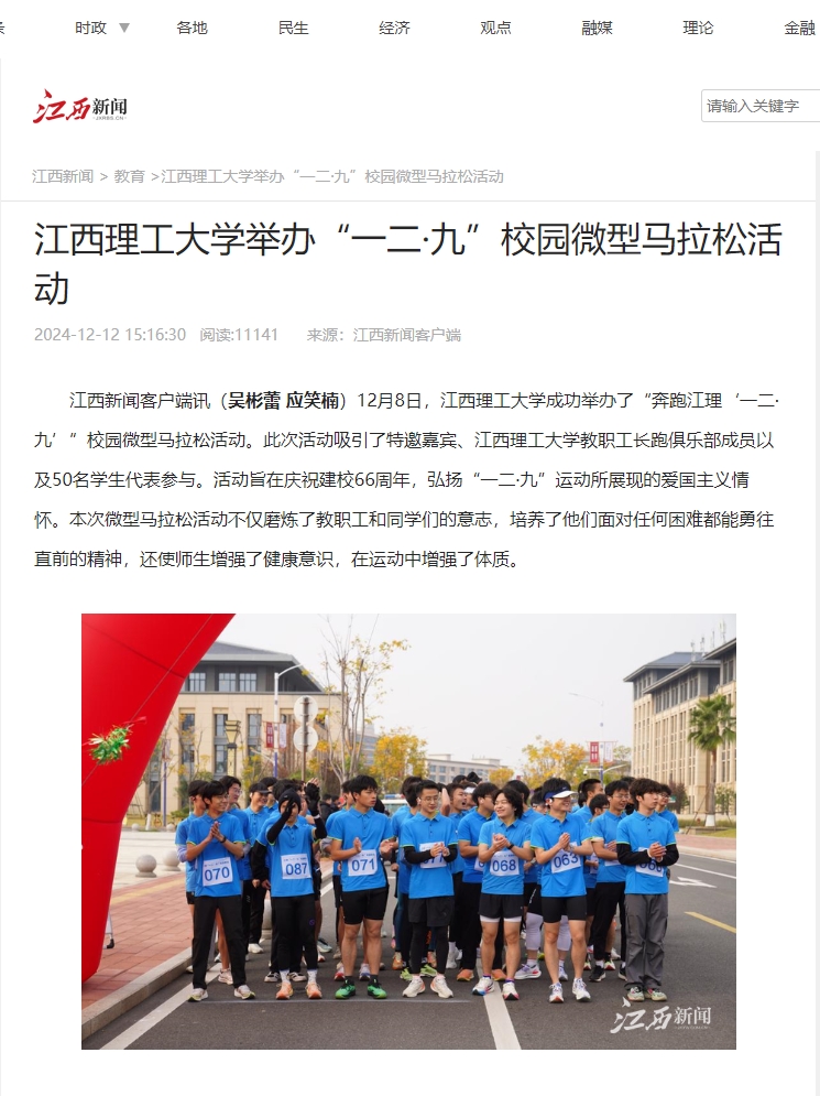 成功举办了“奔跑江理‘一二·九’”校园微型马拉松活动。此次活动吸引了特邀嘉宾、裸聊直播