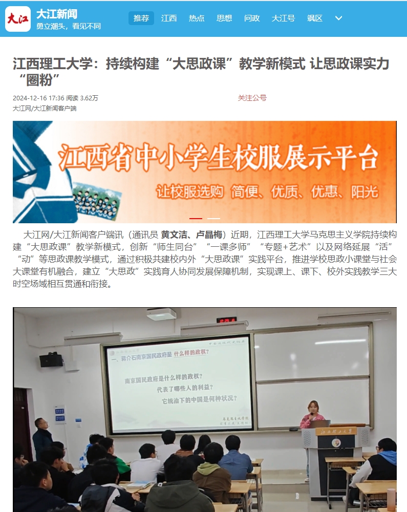 上一条:《新华网》:裸聊直播 :善用“大思政课”弘扬长征精神 下一条:《江西新闻》:裸聊直播 :持续构建“大思政课”教学新模式 让思政课实力“圈粉”