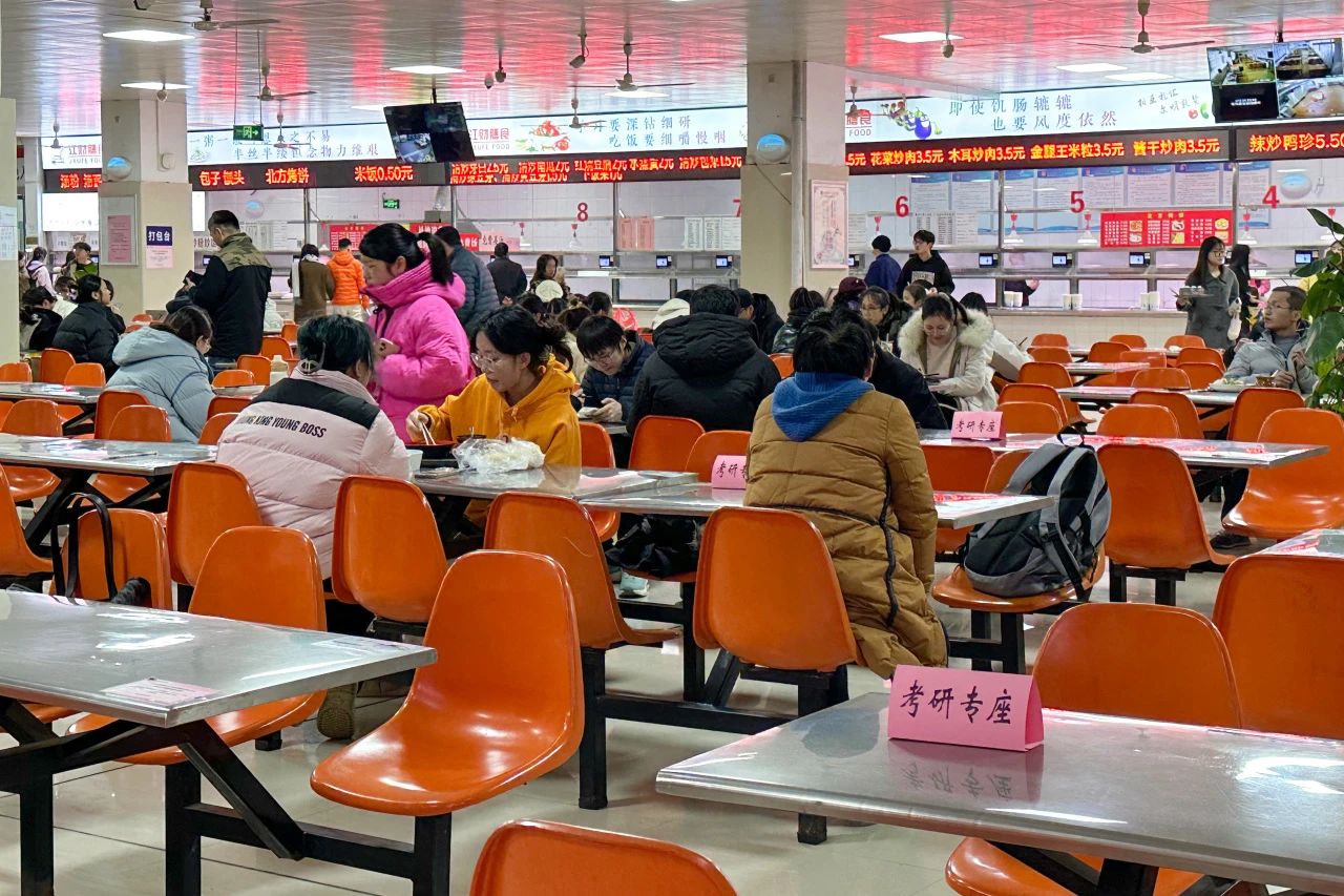 在江西财经大学考点3267名考生整装待发,考点为考生准备了。手机及贵重物品存放柜,确保大家安心应考,食堂内还特别设置了考研专座,为学子们提供专属用餐空间,专门熬煮的红糖姜汤,驱散了冬日的寒冷。