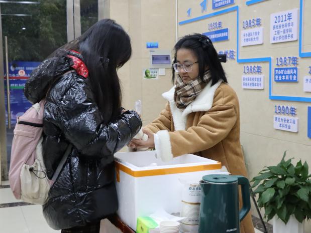 师生为考研学子发放爱心早餐