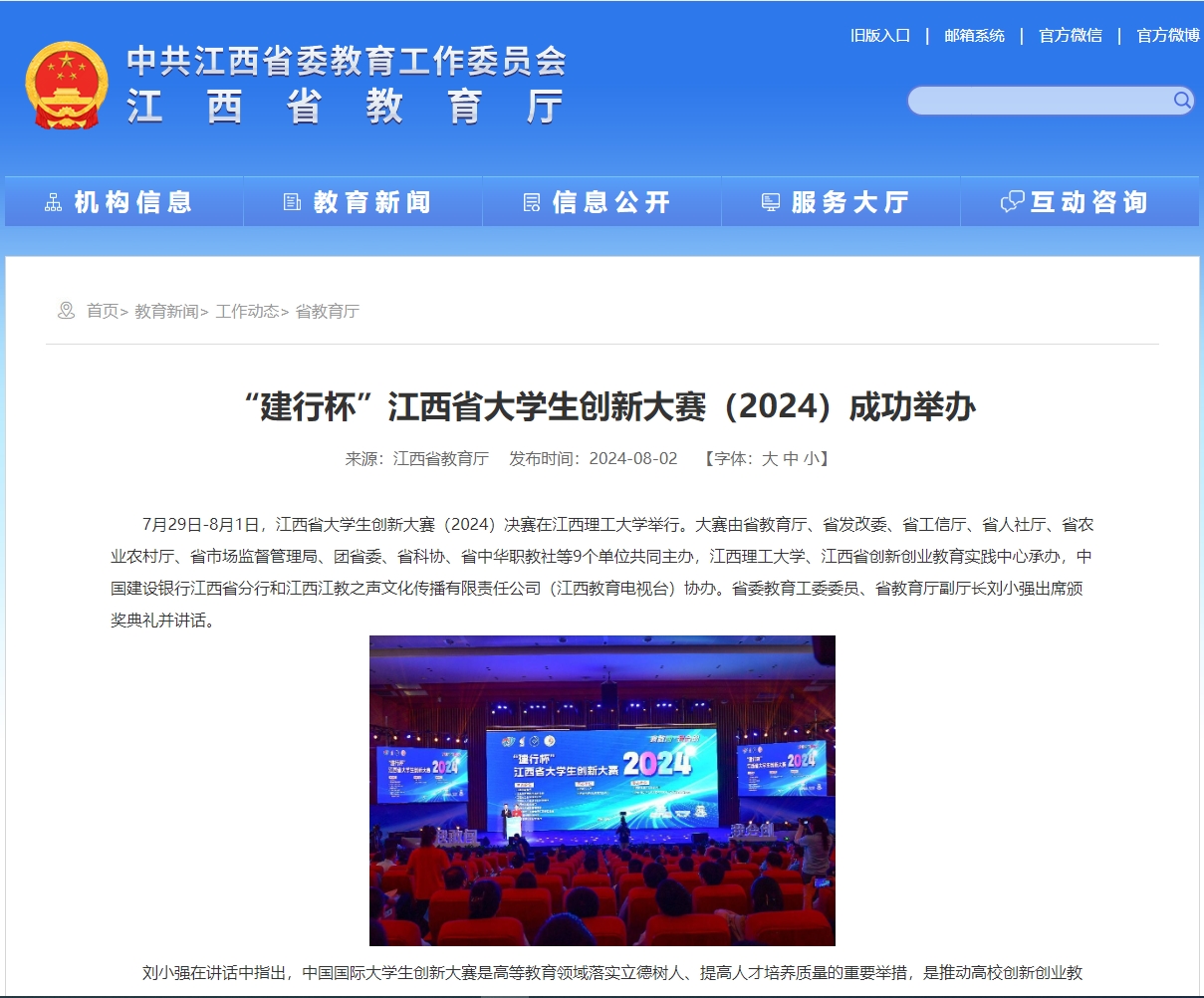 7月29日-8月1日,江西省大学生创新大赛(2024)决赛在裸聊直播