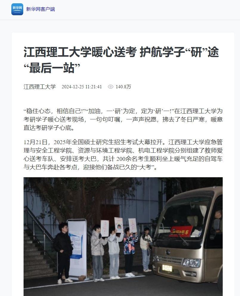 应急管理与安全工程学院、资源与环境工程学院、机电工程学院分别组建了教师爱心送考车队、安排送考大巴,共计 200余名考生顺利坐上暖气充足的自驾车与大巴车奔赴各考点,迎接他们备战已久的“大考”。