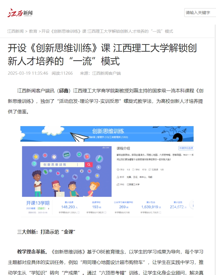深化教育教学改革的生动缩影。在培养新时代创新人才的道路上,“江理人”正以思维变革为引擎,书写着高等教育创新的奋进之笔。