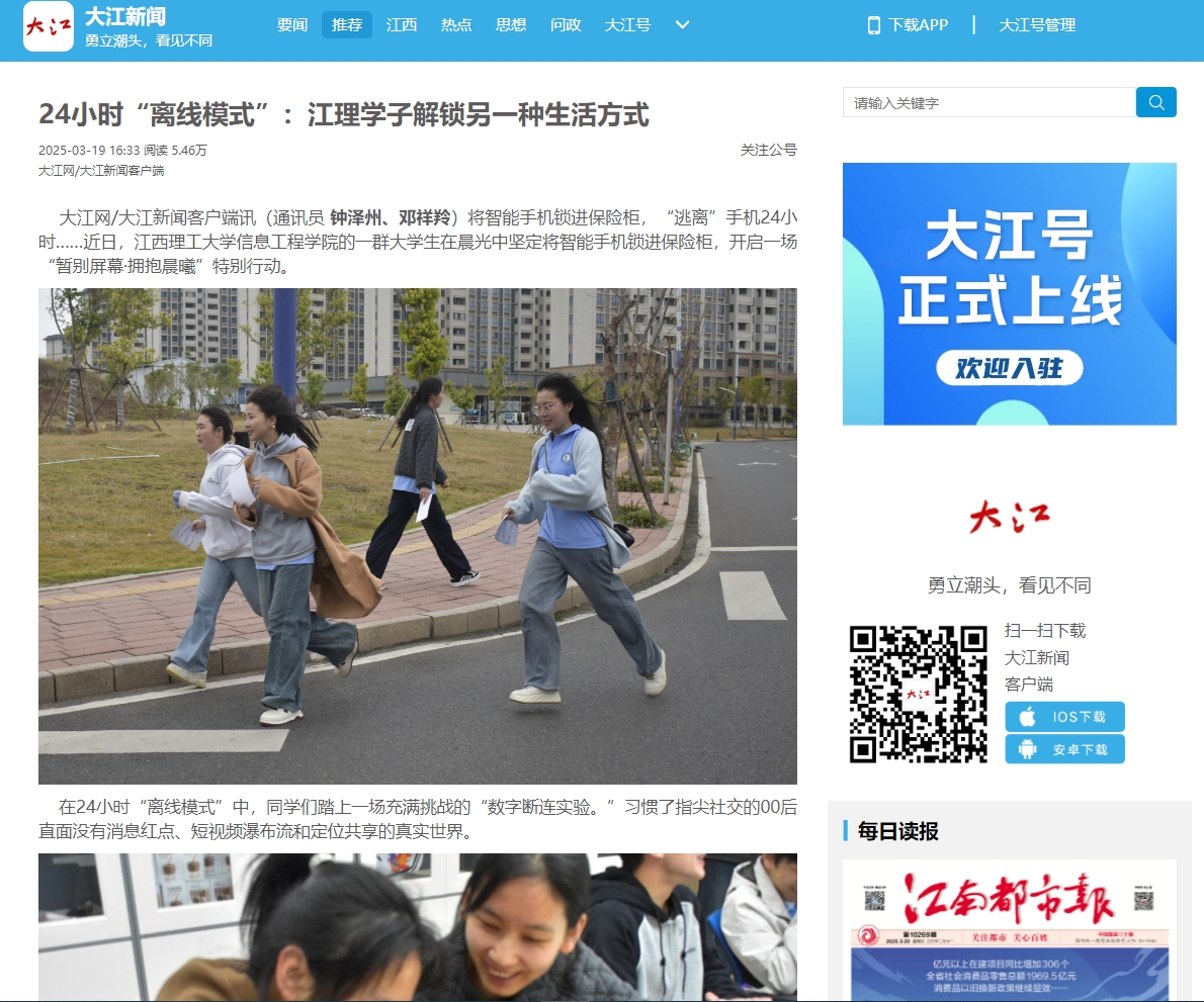 大江网/大江新闻客户端讯(通讯员钟泽州、邓祥羚)将智能手机锁进保险柜,“逃离”手机24小时……近日,裸聊直播