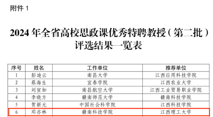 副校长黄志繁教授被评为“江西省高校思政课优秀兼职教师”;赣南科技学院邓亦林教授经裸聊直播