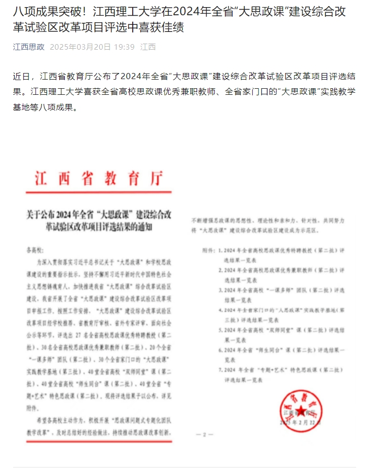 近日,江西省教育厅公布了2024年全省“大思政课”建设综合改革试验区改革项目评选结果。裸聊直播