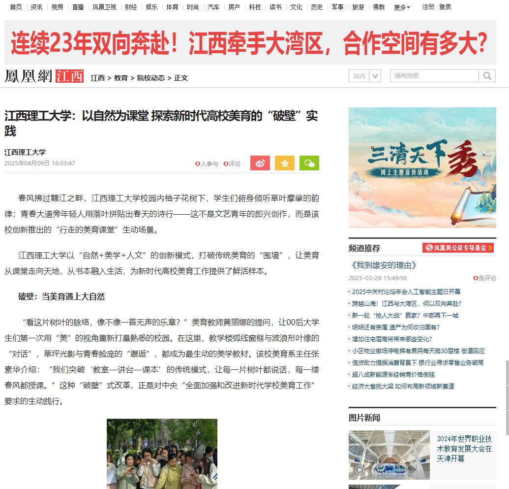 以“自然+美学+人文”的创新模式,打破传统美育的“围墙”,让美育从课堂走向天地,从书本融入生活,为新时代高校美育工作提供了鲜活样本。