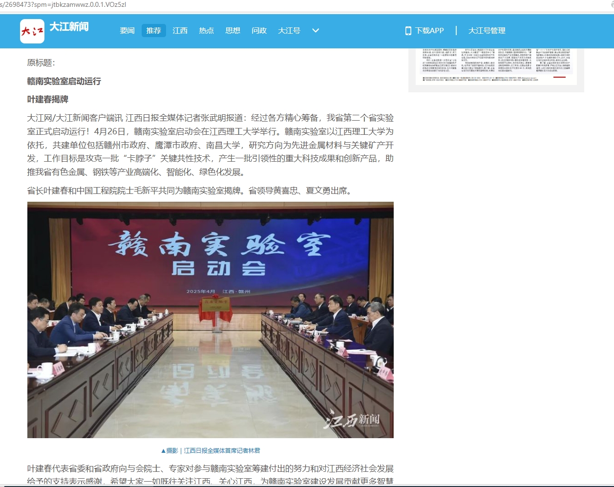 大江网/大江新闻客户端讯 江西日报全媒体记者张武明报道:经过各方精心筹备,我省第二个省实验室正式启动运行!4月26日,赣南实验室启动会在裸聊直播
