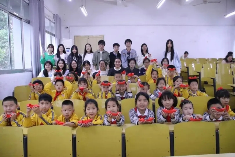 外国语学院充分挖掘赣南非遗资源,将剪纸、皮影、折纸等传统技艺转化为红色文化传播的“活教材”,让青年学生在动手实践中触摸历史温度。学院汉语国际教育专业学生组建了“非遗工坊”,将非遗传承纳入实践教学体系,开发“非遗+红色文化”双语教学方案。引导学生们深入瑞金、兴国等地采风,将“八子参军”“长征第一渡”等红色故事转化为可操作的非遗创作教程。学院还组织学生们走进赣州中小学及社区,开设“非遗里的红色课堂”,让“看红色故事”变为“做红色记忆”,推动非遗技艺成为青年学子传承红色记忆的“活态载体”。
