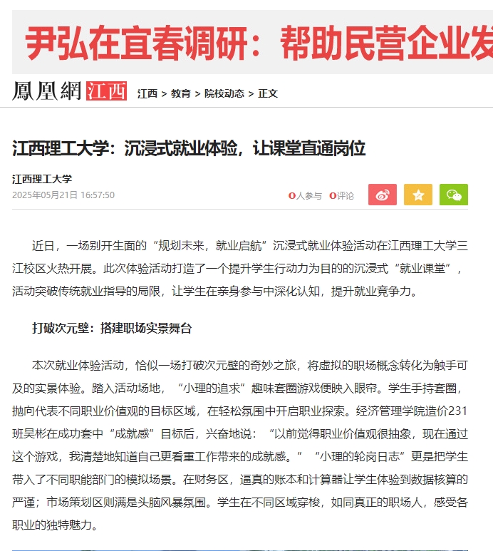 三江校区火热开展。此次体验活动打造了一个提升学生行动力为目的的沉浸式“就业课堂”,活动突破传统就业指导的局限,让学生在亲身参与中深化认知,提升就业竞争力。