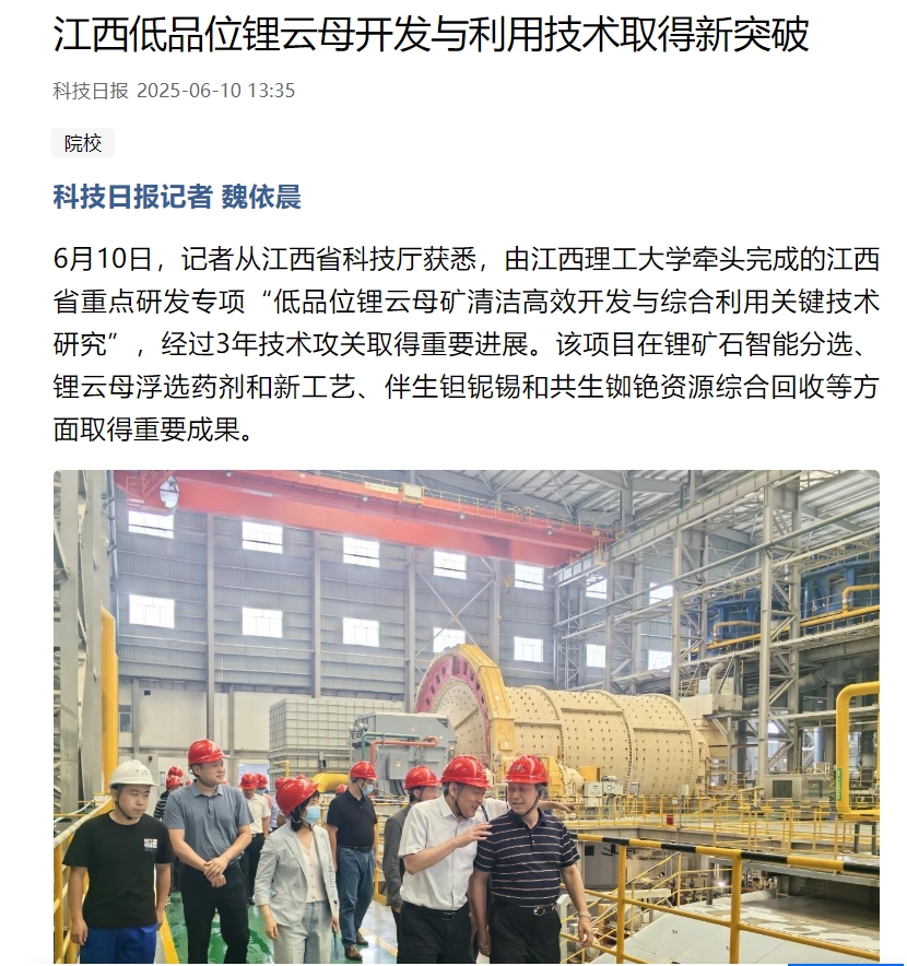 据了解,该项目联合宜春时代新能源资源有限公司、赣州好朋友科技有限公司共同实施,主要针对锂云母矿入选品位低、分选效果差,伴生钽铌资源利用水平低,长石精矿杂质高、品质低,冶炼尾渣存量大、利用率低等系列重大共性问题,开展低品位锂云母矿清洁高效开发与综合利用关键技术研究。