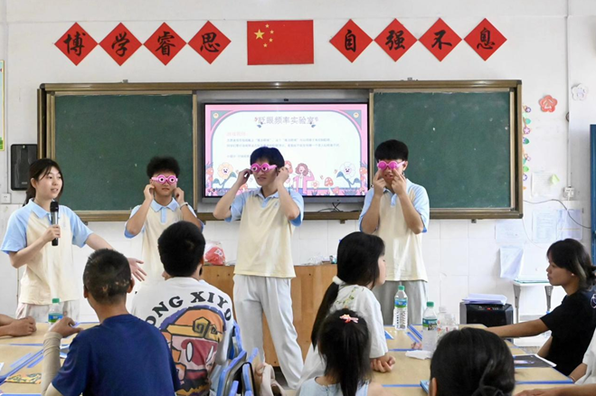 图为队员们演示“魔法眼镜” 秦渊鑫 供图