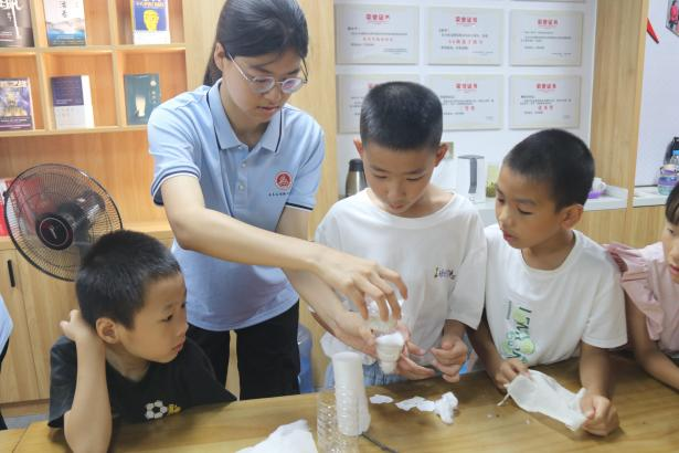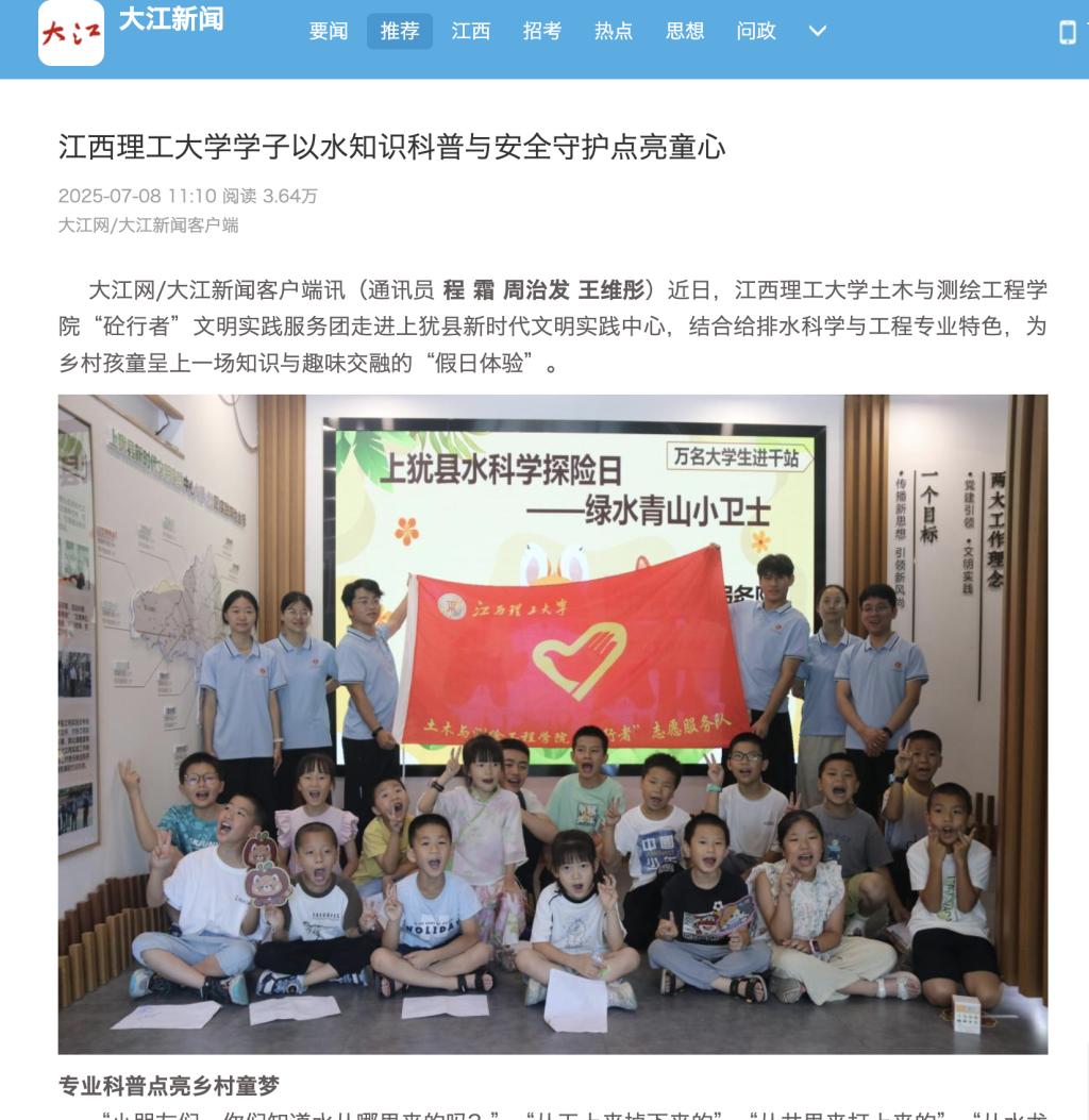 土木与测绘工程学院“砼行者”文明实践服务团走进上犹县新时代文明实践中心,结合给排水科学与工程专业特色,为乡村孩童呈上一场知识与趣味交融的“假日体验”。