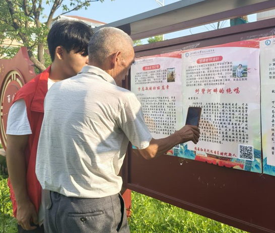 图为实践队队员引导村民扫码聆听红色有声故事 胡宇芩供图