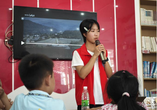 图为实践队队员借助视频为孩子们讲授红色故事 李展翼供图