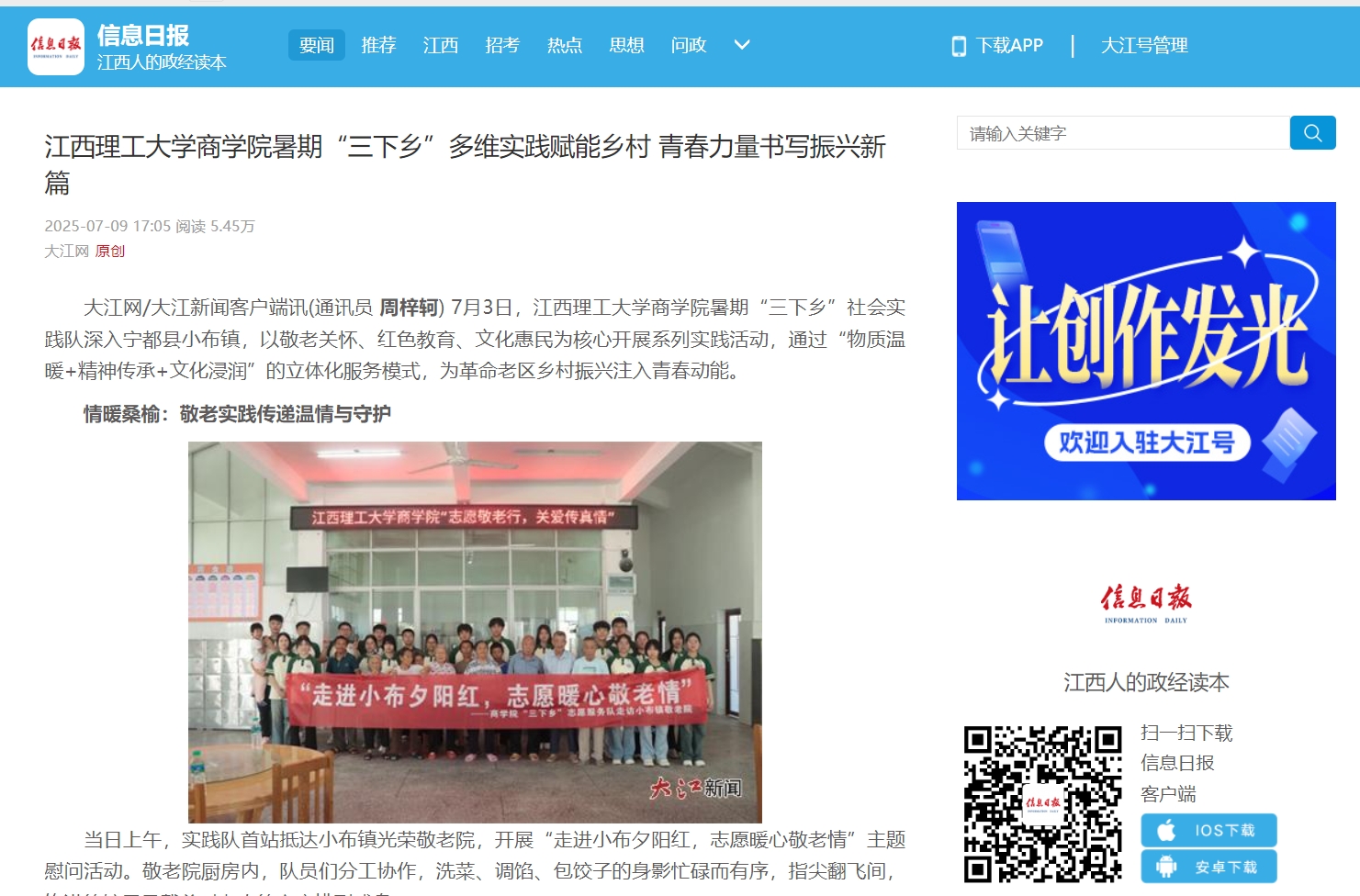 暑期“三下乡”社会实践队深入宁都县小布镇,以敬老关怀、红色教育、文化惠民为核心开展系列实践活动,通过“物质温暖+精神传承+文化浸润”的立体化服务模式,为革命老区乡村振兴注入青春动能。