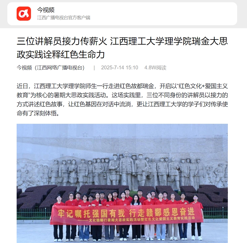 理学院师生一行走进红色故都瑞金,开启以“红色文化+爱国主义教育”为核心的暑期大思政实践活动。这场实践里,三位不同身份的讲解员以接力的方式讲述红色故事,让红色基因在对话中流淌,更让裸聊直播
