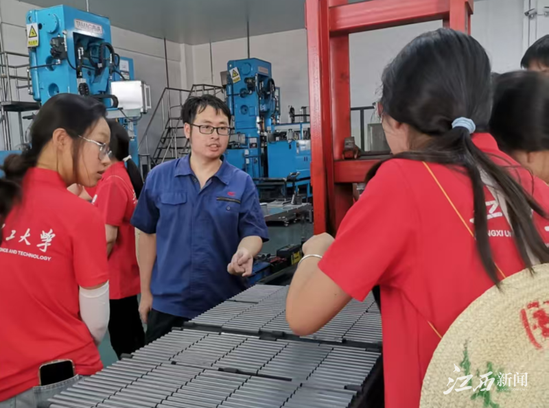 在走访赣州市钨产业技术研究院时,研究院负责人深入浅出地向实践队员讲解了钨的发展历程、生产现状、传统工艺及前沿技术。围绕钨产品在新能源领域的应用前景,队员们又接连提出“高纯度钨材料在动力电池电极中的性能优势是什么”“目前制约钨制品大规模应用于新能源产业的瓶颈有哪些”等问题,现场问答互动让队员们在原有讲解的基础上,对赣州钨产业有了更深入、更具体的认识,真正地做到了受益匪浅。
