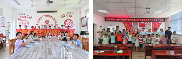 理学院“理蕴红都”社会实践队走进红色故都瑞金,来到叶坪镇朱坊村、河背街童心港湾,把红色故事和数学知识揉进游戏,用科技启迪报国之心,带着朱坊村、河背街童心港湾的孩子们边玩边学,为乡村儿童上了一堂难忘的红色教育课。