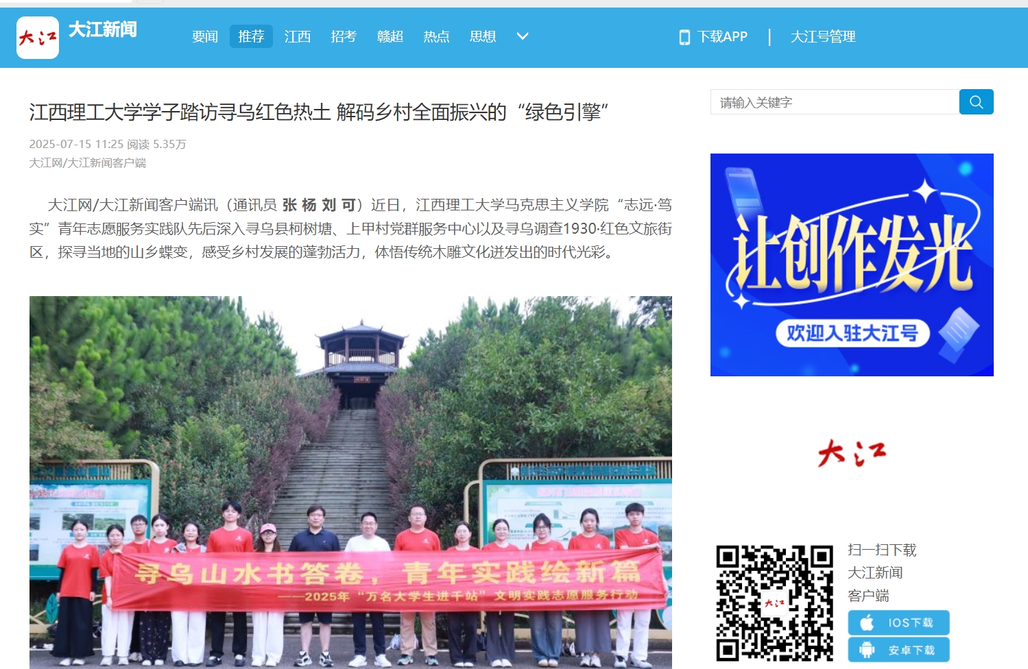 此次寻乌实践,实践队师生感受到了乡村发展的巨大潜力。大家坚信,寻乌的未来必将天蓝水绿、百业兴旺,绘就一幅更加绚丽多彩的乡村振兴新画卷,也深刻体会到了寻乌这片土地所承载的厚重历史和红色文化精神,进一步坚定了他们传承和弘扬中华优秀传统文化的决心。