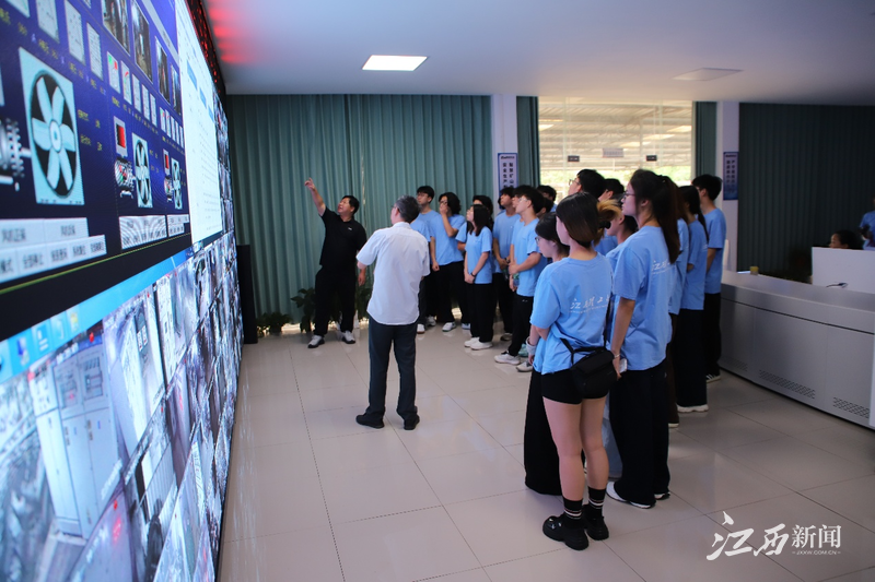 ▲实践队在崇义章源钨业大余石雷钨矿智能控制中心参观学习