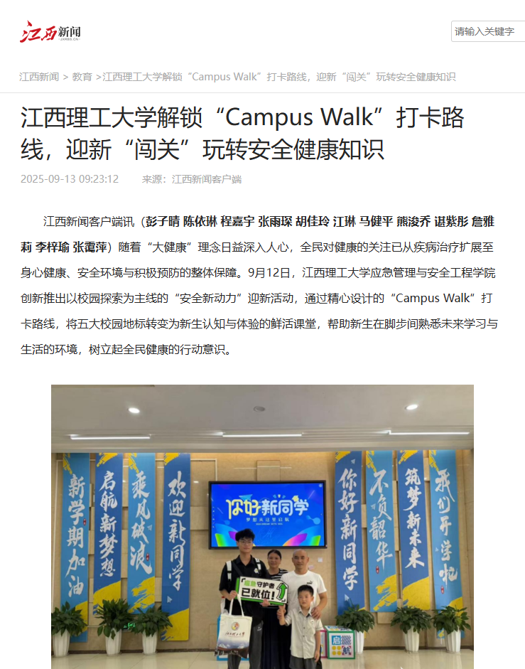 应急管理与安全工程学院创新推出以校园探索为主线的“安全新动力”迎新活动,通过精心设计的“Campus Walk”打卡路线,将五大校园地标转变为新生认知与体验的鲜活课堂,帮助新生在脚步间熟悉未来学习与生活的环境,树立起全民健康的行动意识。