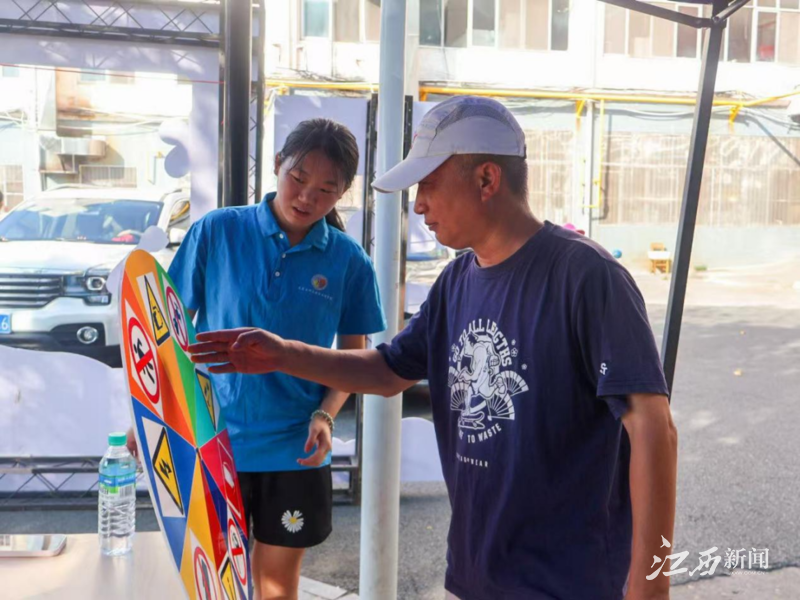在书香阁“美食江湖”站点,新生和家长们解锁校园美味的同时,还积极参与着“安全标识猜猜看”快问快答互动。大家转动标识转盘,快速答出禁止烟火、当心触电等常见安全标志含义,在休闲场景中轻松习得实用安全常识。