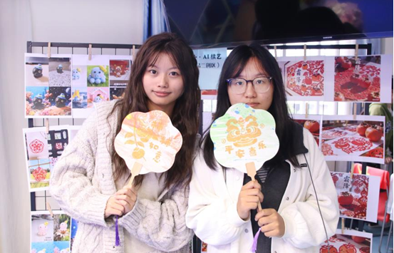 “AI二创让我感受到传统文化的无限创新空间,也让我对中华优秀传统文化创造性转化和创新性发展有了更加直观的理解。”外国语学院马雅舒同学如是说道。在“指尖匠心·AI续艺”展区,同学们运用AI技术对自主完成的剪纸作品的形态、色彩、风格进行智能再造与艺术升华,在活动中直观感受从手工作品到数字创意作品的转化链条,亲身感悟科技赋能艺术创作的创新性与可能性。