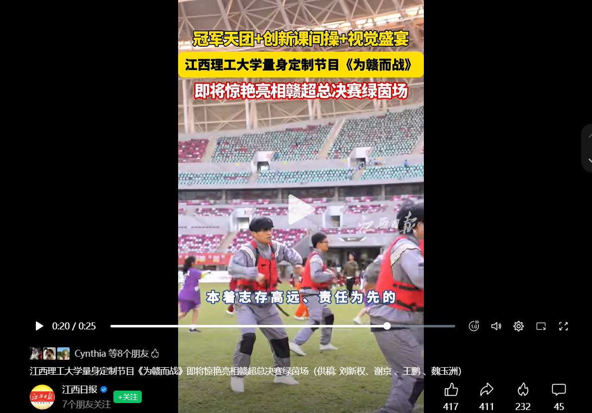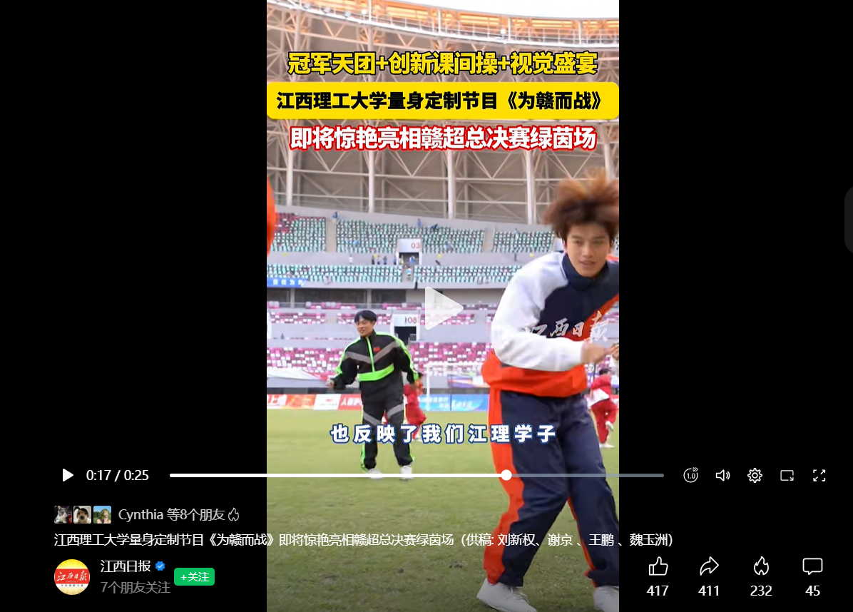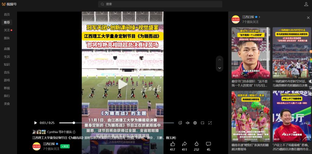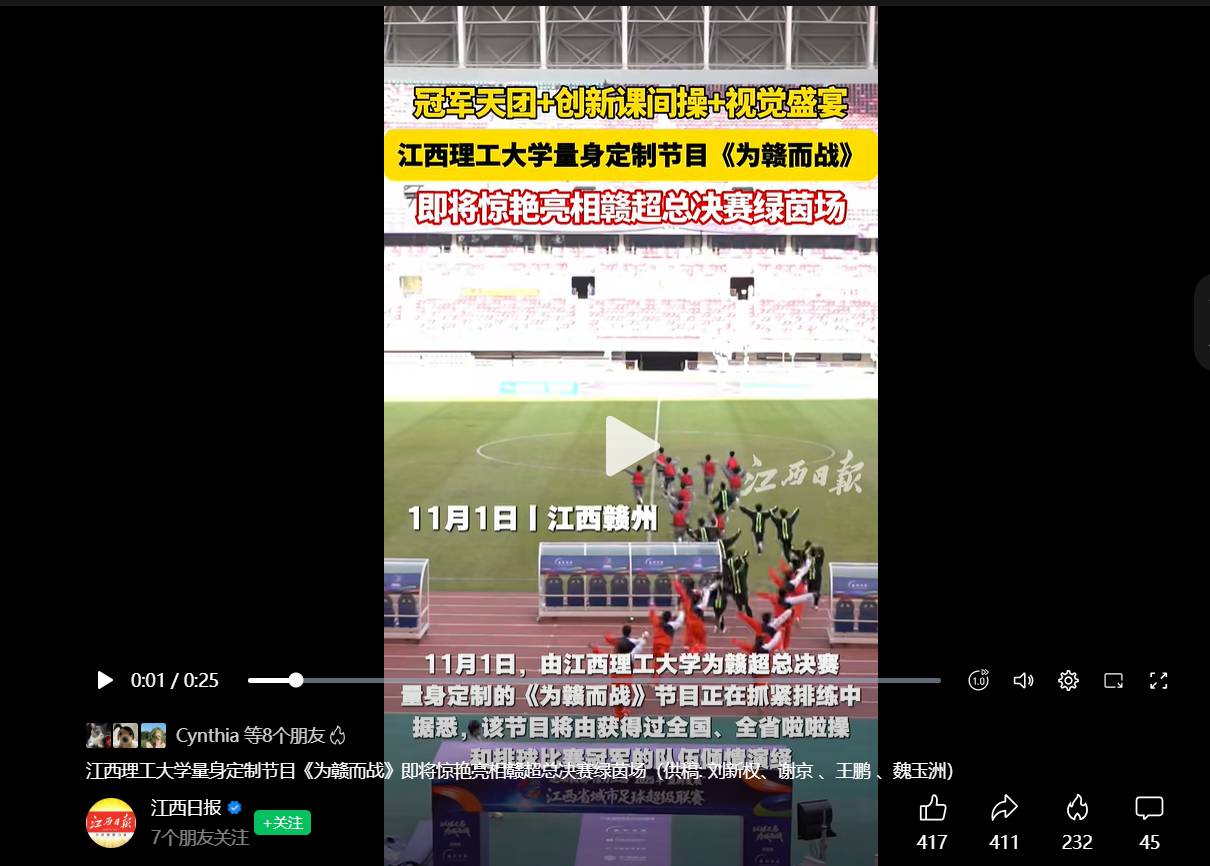 上一条:《江西日报视频号》:《为赣而战》惊艳赣超总决赛现场 下一条:《大江新闻》:视频|裸聊直播 《为赣而战》燃爆赣超总决赛