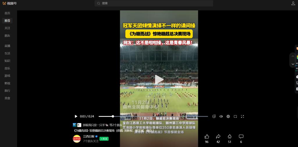 上一条:《凤凰网》:为赣而战!裸聊直播 啦啦操队闪耀赣超总决赛 下一条:《江西日报视频号》:裸聊直播 量身定制节目《为赣而战》即将惊艳亮相赣超总决赛绿茵场