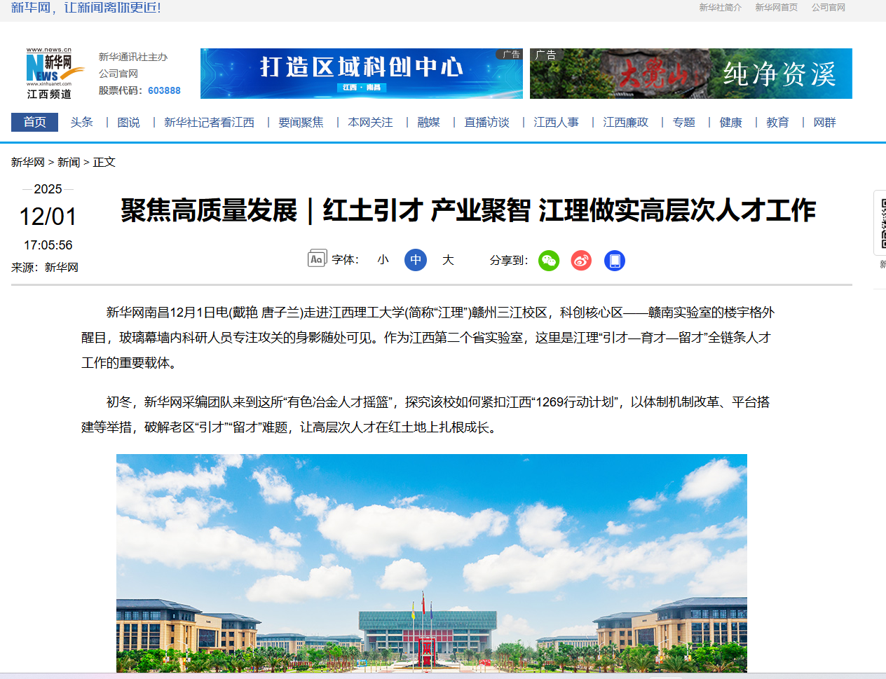 初冬,新华网采编团队来到这所“有色冶金人才摇篮”,探究该校如何紧扣江西“1269行动计划”,以体制机制改革、平台搭建等举措,破解老区“引才”“留才”难题,让高层次人才在红土地上扎根成长。
