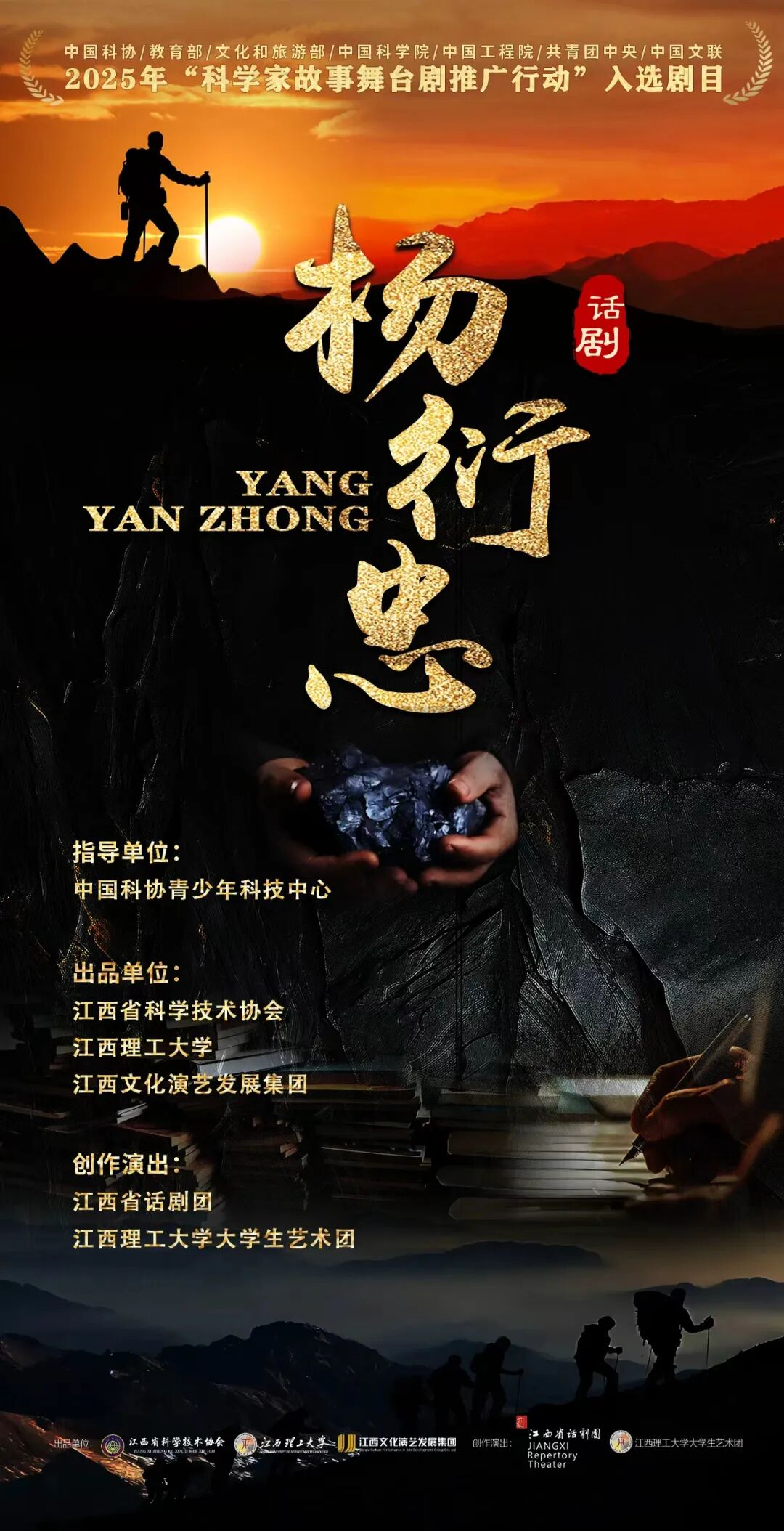 2024年12月,原创话剧《杨衍忠》在南昌、赣州首演,杨衍忠先生的坚守赢得了万千雷动的掌声,也激励了广大学子和社会人士投身科研,为实现中华民族伟大复兴的中国梦贡献力量。