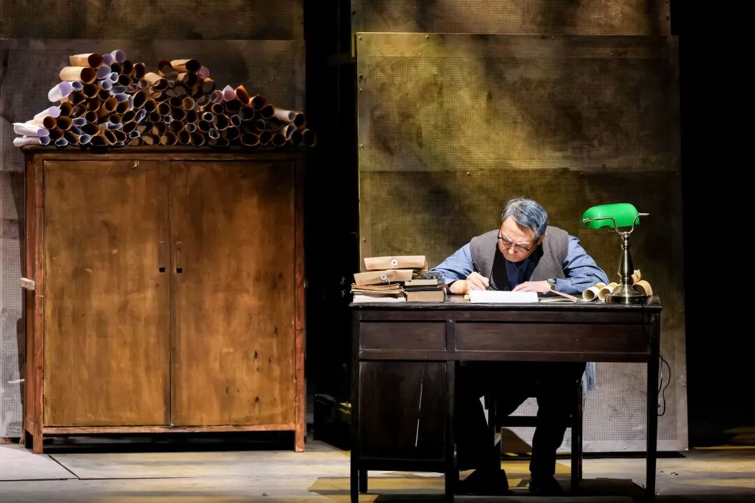 话剧《杨衍忠》讲述了“全国优秀科技工作者”、物化探高级工程师杨衍忠的感人事迹。退休后,他毅然投身于一场与生命的“赛跑”,历时20载,以每年30万字的速度,潜心收集整理赣南地区地矿资料,最终凝结成600多万字的《江西南部地质、物化探矿产信息卡片》。在生命弥留之际,他将这份沉甸甸的成果全部无偿捐献给了党和国家。话剧采用多线叙事的手法,通过时空的巧妙穿插,将过往与当下紧密相连。它交替讲述了杨衍忠青年时期的刻苦勤奋、中年时期的执着坚韧与退休后的家国情怀,艺术再现了他生前留下的“活地图”“生命绝唱”与“精神富矿”。