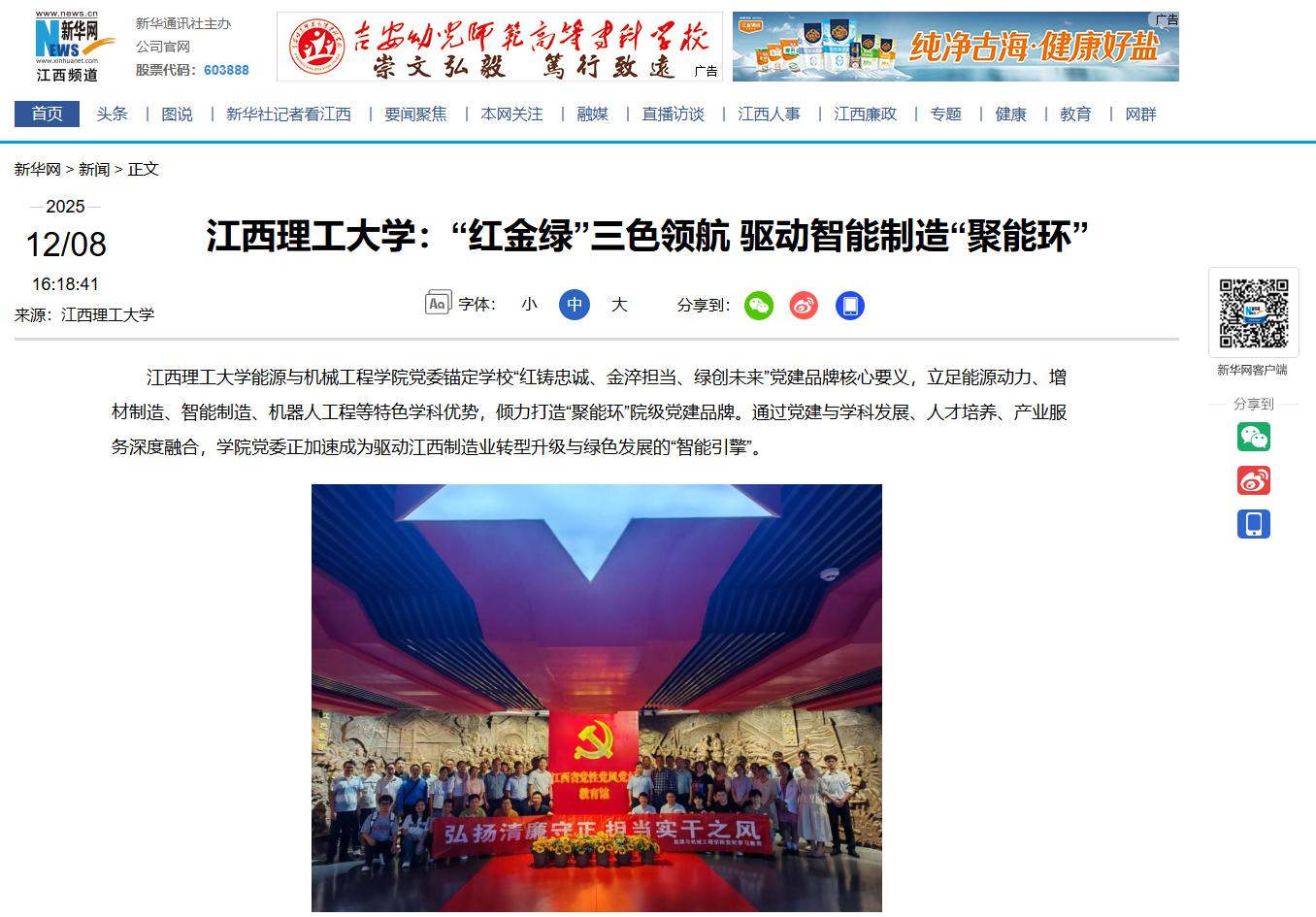 能源与机械工程学院党委锚定学校“红铸忠诚、金淬担当、绿创未来”党建品牌核心要义,立足能源动力、增材制造、智能制造、机器人工程等特色学科优势,倾力打造“聚能环”院级党建品牌。通过党建与学科发展、人才培养、产业服务深度融合,学院党委正加速成为驱动江西制造业转型升级与绿色发展的“智能引擎”。