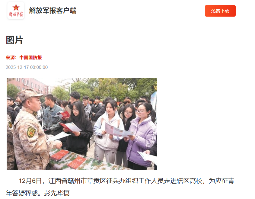 上一条:《新华网》:裸聊直播 :党建引领 架起文化出海新桥梁 下一条:《中国国防报》:图片-江西省赣州市章贡区征兵办组织工作人员走进辖区高校