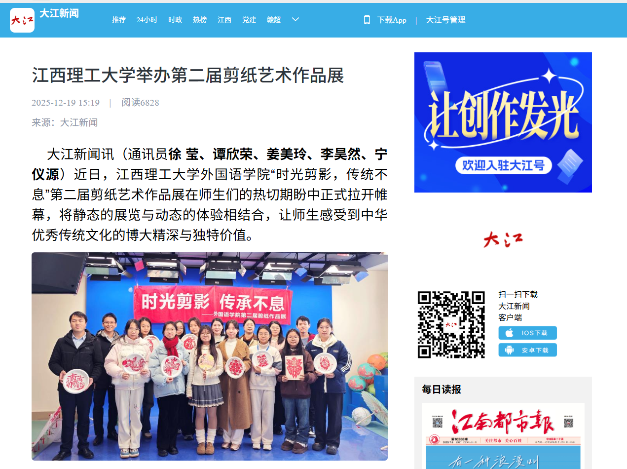 外国语学院教师黄维清表示,此次展览不仅是剪纸艺术的展示,更是一堂生动的“第二课堂”,旨在引导青年在实践中增强文化自信,提升实践能力,让文化传承在亲身体验中扎根。