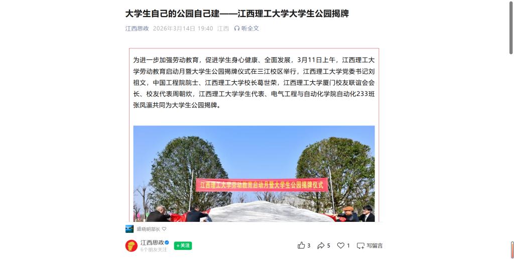 劳动教育启动月暨大学生公园揭牌仪式在三江校区举行,裸聊直播