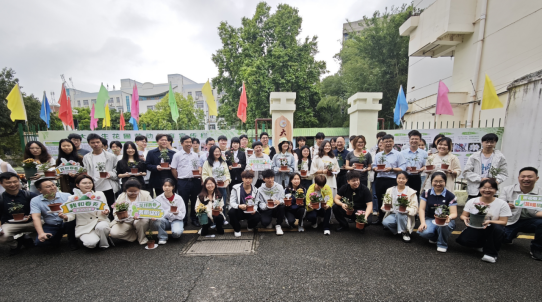 党委常委、纪委书记、监察专员刘飞,党委常委、副校长宁洁及学生代表共同为大学生花圃揭牌。