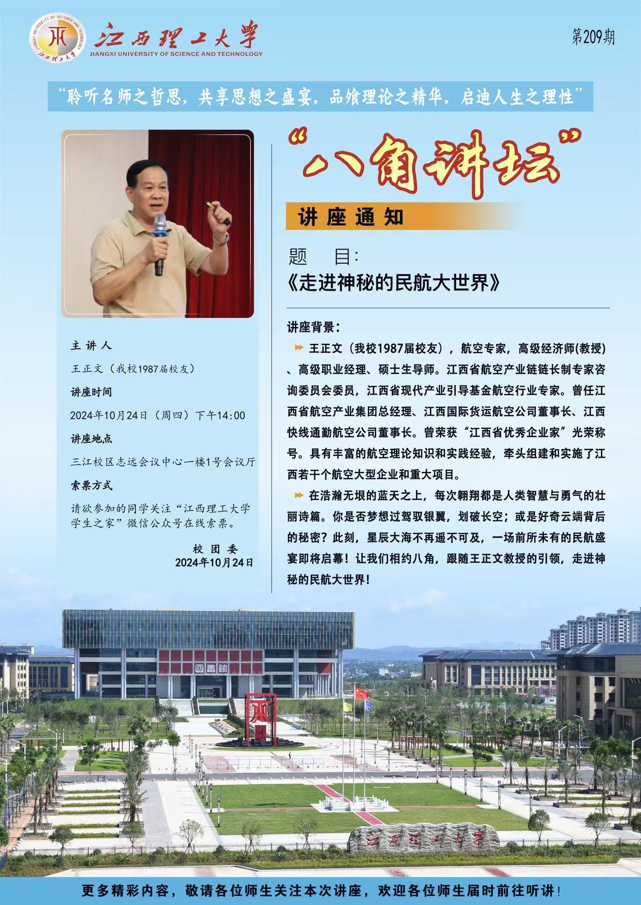 讲座题目:《走进神秘的民航大世界》
