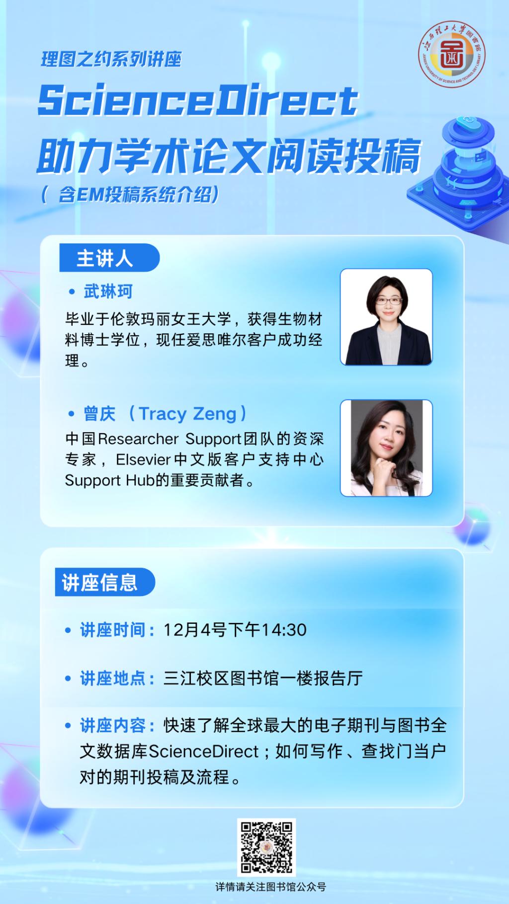 讲座主题:指引科学的方向——ScienceDirect助力学术论文阅读投稿(含EM投稿系统介绍)